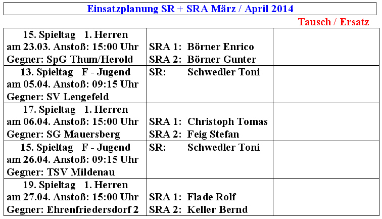 Einsatzplan der Schiedsrichter und Schiedsrichterassistenten!